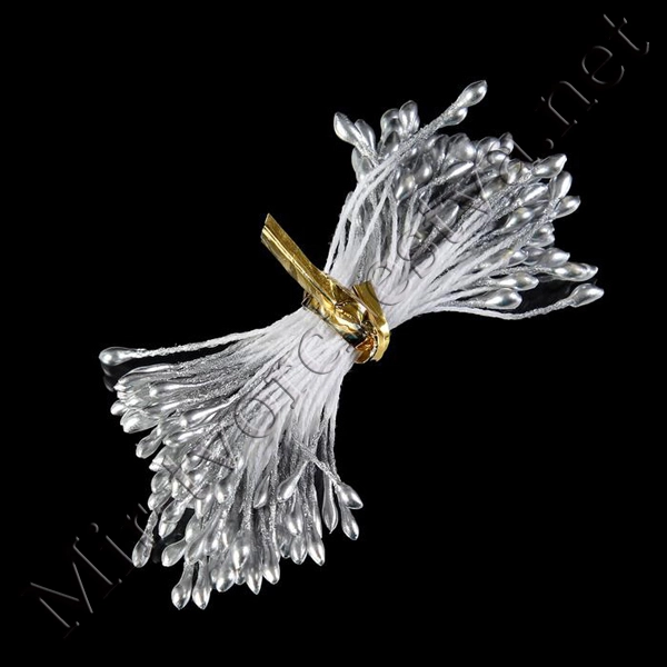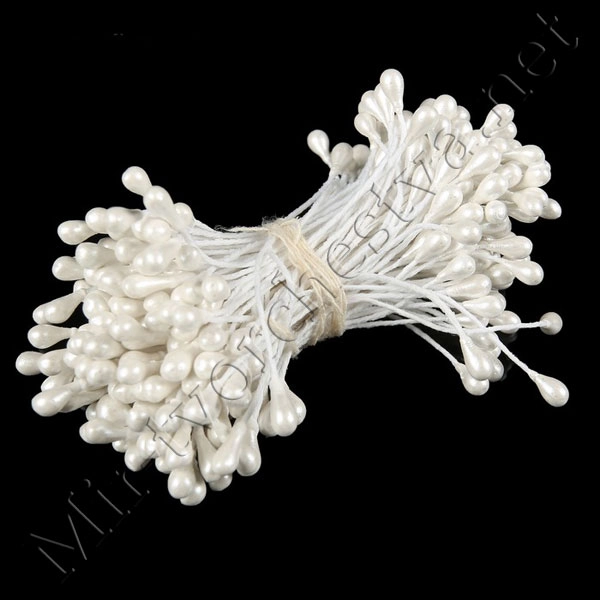 Тычинки для искусственных цветов "Капельки белые" (набор 130шт.) длина 6см