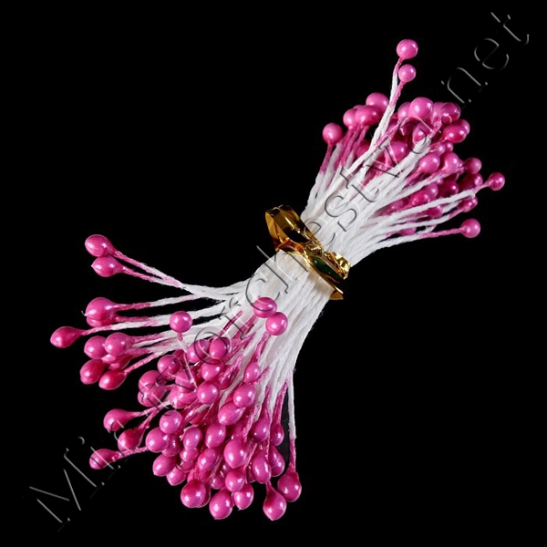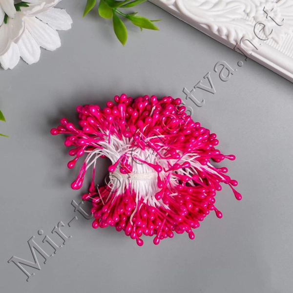 Тычинки для искусственных цветов "Капельки глянец фуксия" (набор 300шт.) длина 6см