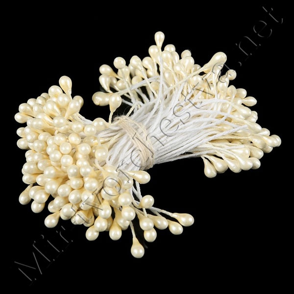 Тычинки для искусственных цветов "Капельки слоновая кость" (набор 130шт.) длина 6см
