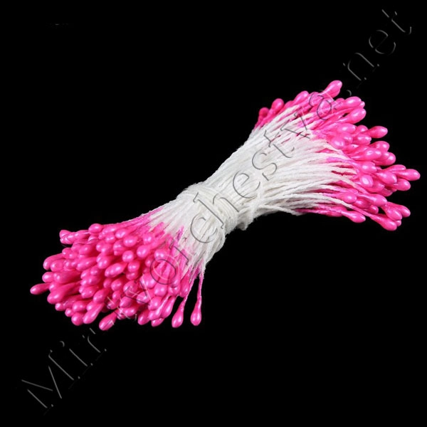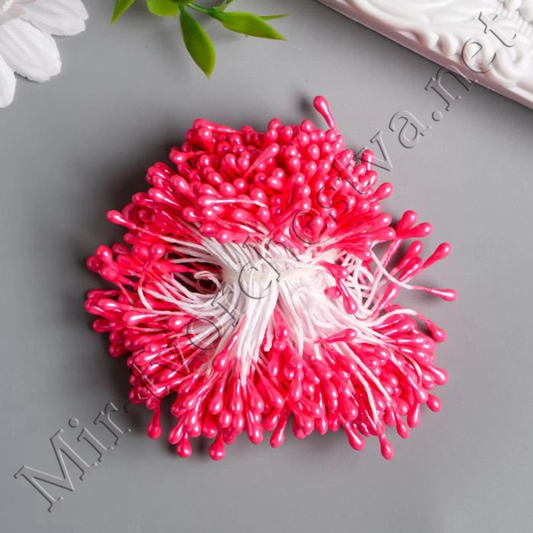 Тычинки для искусственных цветов "Капельки глянец ярко-розовый" (набор 300шт.) длина 6см