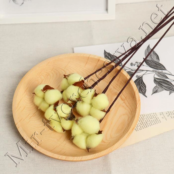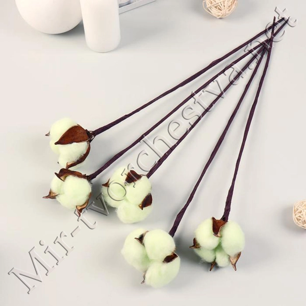 Декор сухоцвет "Хлопок" d-5см, 30см, Зелёный