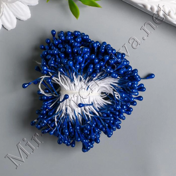 Тычинки для искусственных цветов "Капельки глянец королевский синий" (набор 300шт.) длина 6см