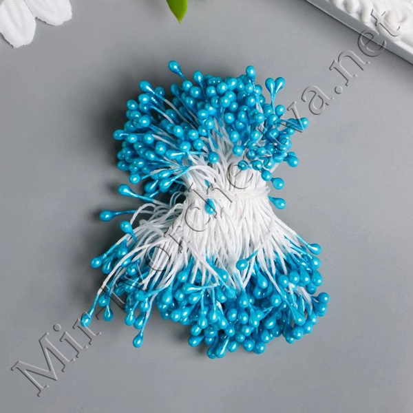 Тычинки для искусственных цветов "Капельки глянец голубое озеро" (набор 300шт.) длина 6см