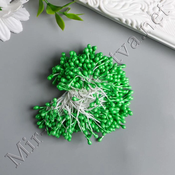 Тычинки для искусственных цветов "Капельки глянец салат" (набор 300шт.) длина 6см