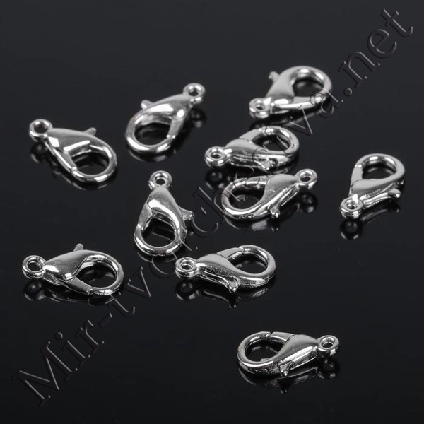 Замок-карабин, СМ-521, (набор 10шт.), цвет серебро