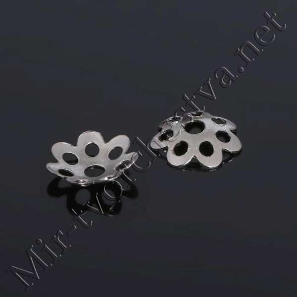 Концевик-шапочка, цвет серебро, 9 мм (набор 5шт)