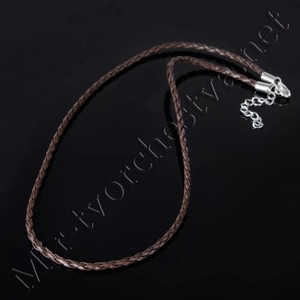 Шнурок искусственная кожа d=3мм, L=45см, косичка, цвет Коричневый