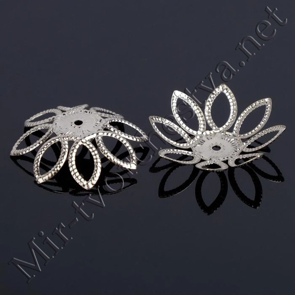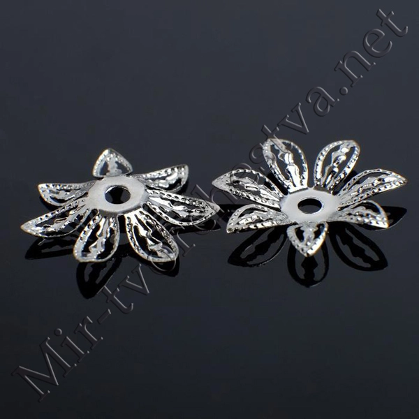 Шапочки для бусин (набор 20шт) СМ-068, 3х16 мм, цвет серебро