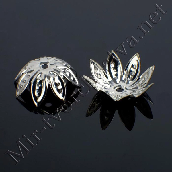 Концевик-шапочка, цвет серебро, СМ-167, 11,2*14 мм (набор 5шт)