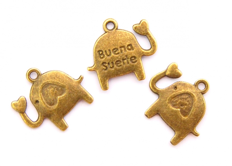Подвеска металлическая, Слоник с сердцем, Античная бронза, 6шт., 15мм, 6шт., Margo