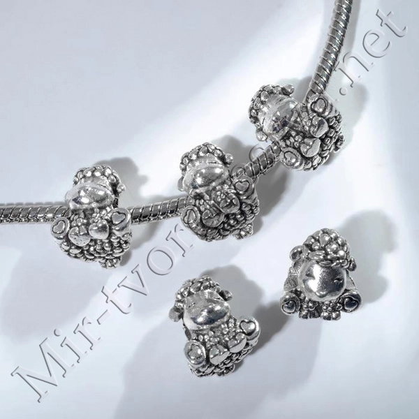 Талисман "Овечка" с сердечками, цвет Серебро
