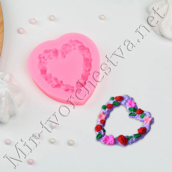 Молд силиконовый, 7х7х1,3 см "Сердце в розочках" 3624577